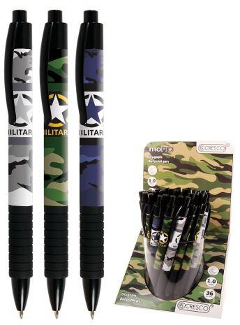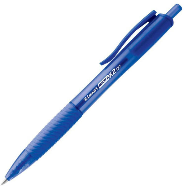 Nyomógombos műanyag golyóstoll modern dizájnnal. Kényelmes, gumírozott markolattal. Tolltest színével megegyező ultra alacsony viszkozitású tinta.