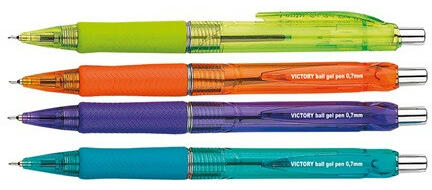 Golyóstoll Centrum Victory 0,7 mm eldobható kék * műanyag nyomógombos golyóstoll * színes test, azonos színű műanyag fogófelület * olajbázisú tinta * írásvastagság: 0,7 mm