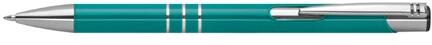 Lakkozott felületű, három díszítő gyűrűvel ellátott, kéken író fém golyóstoll. Termék mérete: 1 x 14,2cm Emblémázását, feliratozását vállaljuk.