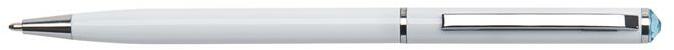 Klasszikus kivitelű, eredeti Swarovski® kristállyal díszített golyóstoll. Rendkívül kedvező ár-érték arány. A tolltest fém, logózható, lézergravírozható. Tolltest színe: fehér. Kristály színe: aquakék. Betét színe: kék. Vonalvastagság: 0,7mm. Csomagolás: bársonytokban.