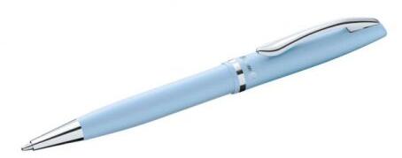 Elegáns golyóstoll forgatható mechanizmussal és fém testtel, Pelikán csőr formájú rugalmas klipszel. Kék dokumentációs kazetta 337 M, rendelési sz. kód PE915439. Tipp szélessége 1 mm. Puha pasztell test és fedél, ezüst kiegészítők. Testszín: cián