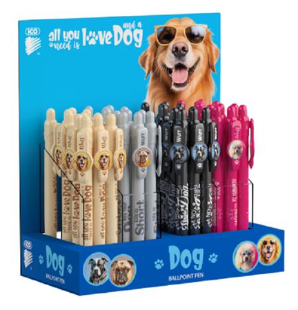 Kedves színes golyóstoll, öröm vele írni. Kutya motívummal díszített nyomógombos mechanikával működő golyóstoll. Cserélhető X-20-as betéttel. Golyóátmérő: 0,8 mm. Íráshossz: 2500 m. Írásszín: kék.