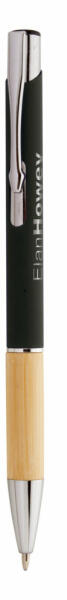 Alumínium golyóstoll bambusz markolattal, gumírozott felülettel és kék tollbetéttel. Speciális bevonattal rendelkezik, amely különlegesen fényessé teszi a gravírozott emblémát.