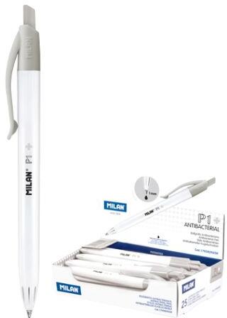 Toll fekete tintával P1, antibakteriális kiadás. Ezüst-foszfáttal (CAS 308069-39-8) kezelve, antibakteriális hatással. Ideális a higiénia javítására iskolai, irodai, élelmiszerrel érintkező és egészségügyi környezetben. Fehér hordó gombbal és klipszel. A bejárat hozzávetőleges hossza 1200 méter. 1 mm-es hegy. Németországban gyártott tinta. A toll mérete: 141 x 17 cm.