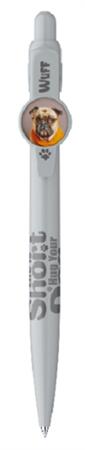 Kedves színes golyóstoll, öröm vele írni. Kutya motívummal díszített nyomógombos mechanikával működő golyóstoll. Cserélhető X-20-as betéttel. Golyóátmérő: 0,8 mm. Íráshossz: 2500 m. Írásszín: kék.