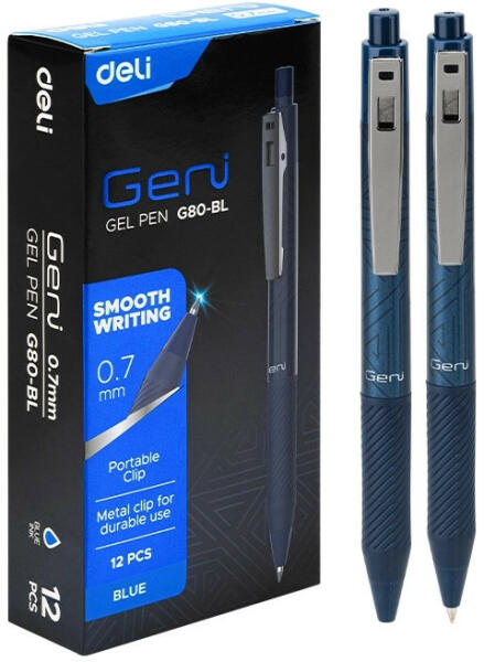 Deli golyóstoll nyomógombos 0.7 mm-es vastagság kéken fogó tinta