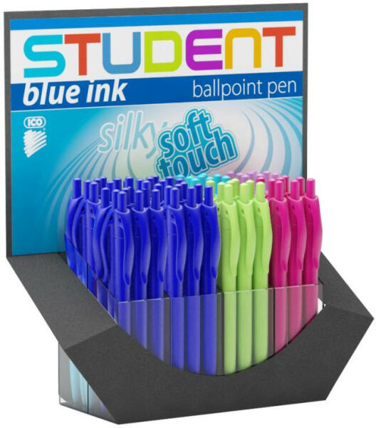 Nyomógombos golyóstoll. Műanyag 5 féle, vidám, élénk színű tolltest. Írásszín: kék. Golyóátmérő: 0,7 mm Student: írószerek, füzetek, formatervezett, magas minőségű kartonból készülő iratrendezési kellékek iskolai és irodai használatra. Míg a Süni az alsós gyermekeknek nyújt elsősorban kiváló termékeket, addig a Student inkább a felsősök igényeit elégíti