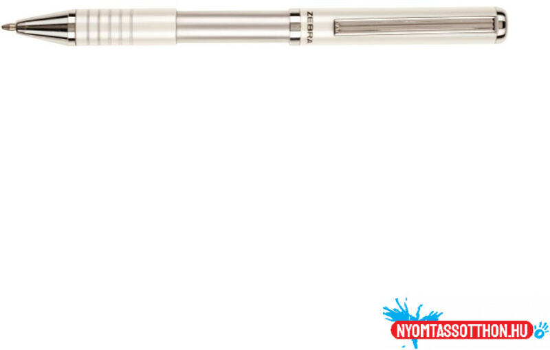 Golyóstoll metál fehér test, Zebra SLF1, írásszín kék Elegáns megjelenésű exkluzív golyóstoll, rozsdamentes acél tolltest, a szárhossz változtatásával kapcsoljuk be illetve ki a tollat : 105–130 mm. Gazdag színválaszték. Díszdoboz jár hozzá. Tintaszín: kék. Golyóátmérő: 0,7 mm, írásvastagság 0,24 mm. Betét: F. 12db/gyűjtő, 240db/karton.