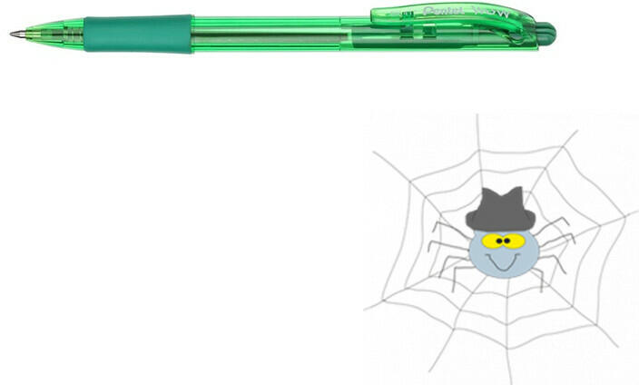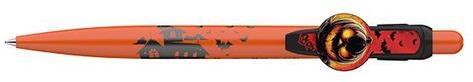Halloween motívumokkal díszített nyomógombos mechanikával működő golyóstoll. Cserélhető X-20-as betéttel. Golyóátmérő: 0,8 mm. Íráshossz: 2500 m. Írásszín: kék.