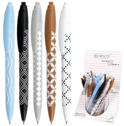 Műanyag testű golyóstoll modern Super Soft dizájnnal. A toll kellemes kialakítású, gumírozott felülettel. A hegy átmérője 1,0 mm. Cserepatron, kód: 0590.