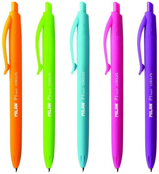MILAN márkájú, színesen író golyóstoll ergonomikus markolattal, nyomógombos tollszerkezettel. Az egyedi gumírozott (Touch) hatású tollteste kényelmes írást tesz lehető, csúszásmentes. Kiváló tollbetétje könnyeddé teszi az írást. Vonalvastagság: 0,7 mm. Írásszín: a tolltest színével megegyező. Betétje cserélhető (X-18-as). A Milan kiváló minőségű német tintá