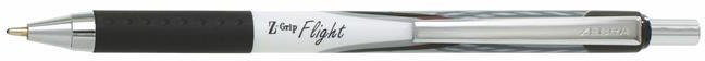 Golyóstoll, 0,34 mm, nyomógombos, ZEBRA "Z-Grip Flight", fekete Egyszerű de megbízható nyomógombos golyóstoll mindennapos használatra. -műanyag tolltest -írásvastagság: 0,34 mm -gumírozott markolat -markolat színe megegyezik a tinta színével -fém klip