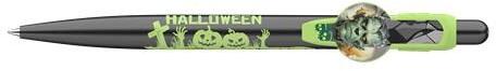 Halloween motívumokkal díszített nyomógombos mechanikával működõ golyóstoll. -golyóátmérõ: 0,8 mm -írásszín: kék -íráshossz: 2500 m -cserélhetõ betét cikkszáma: TICX20KCsomagolási egység: 1 db Alcsoport cserélhetõ betétes Tolltest anyaga műanyag Szerkezet nyomógombos Fogórész gumírozott Nem Klip típusa műanyag Vonalvastagság 0.8 mm Golyóátmérõ 0.8 mm Tinta s