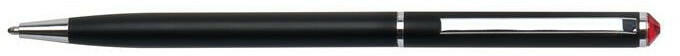Golyóstoll, fekete "SLIM", light siam piros SWAROVSKI® kristállyal, 13 cm, ART CRYSTELLA® Klasszikus kivitelű, eredeti Swarovski® kristállyal díszített golyóstoll. Rendkívül kedvező ár-érték arány. A tolltest fém, logózható, lézergravírozható. Tolltest színe: fekete. Kristály színe: light siam piros. Betét színe: kék. Vonalvastagság: 0,7mm. Csomagolás: bársonytokban