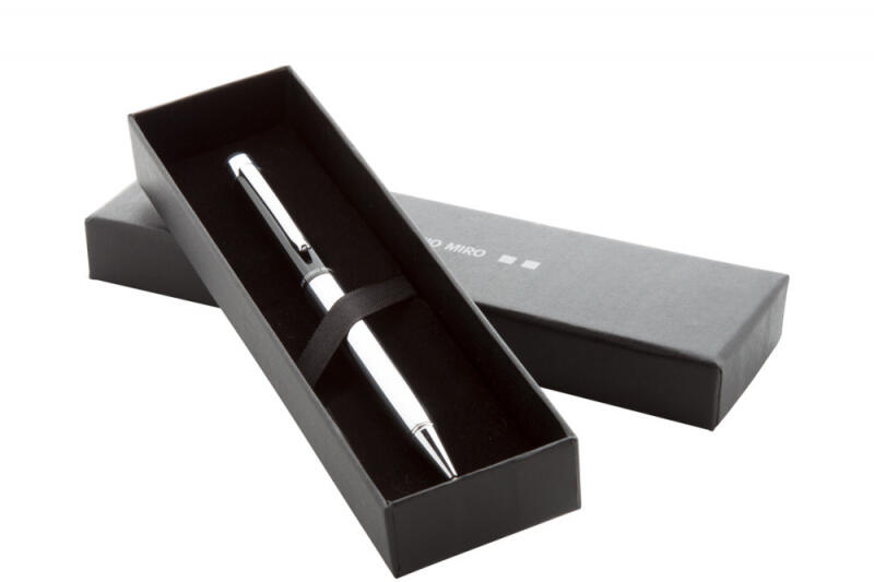 Fém golyóstoll érintőképernyős véggel, fekete díszdobozban. Kék tollbetéttel szállítjuk. Antonio Miro márkatermék.