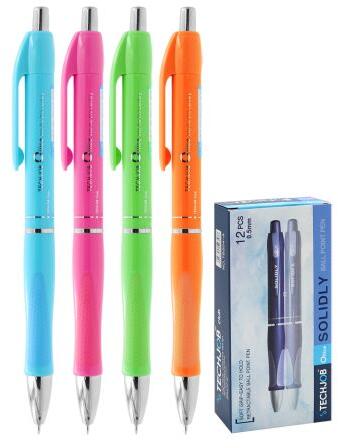 SOLIDLY műanyag golyóstoll, NEON alkategória. A toll négy kivételes színben kapható. A töltelék színe kék . A csúcs átmérője 0,5 mm . Cserepatron: 0512