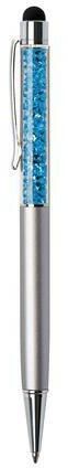 Golyóstoll, ezüst, felül aquakék SWAROVSKI® kristállyal töltve, érintővel, 14 cm, ART CRYSTELLA®
