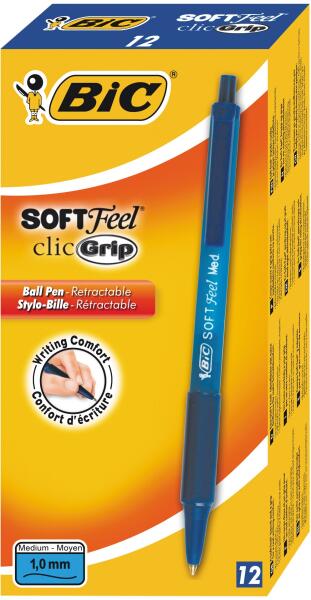Bic Soft Feel Clic Grip kék golyóstoll, 12 db/doboz A dobozban található 12 darab BIC Soft Feel toll könnyű, de erős hegyű a hatékony írás érdekében. Nem csoda, hogy a diákok, tanárok és szakemberek ezeket a tollakat részesítik előnyben. A BIC Soft Feel Clic Grip toll gumírozott markolattal rendelkezik a könnyű kezelhetőség és a rendkívül kényelmes írás érdekében. T