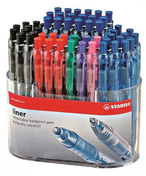 Műanyag testű nyomógombos golyóstoll. Ergonómikus fogórész. Kiszerelés 55 db/display Tartalom: 308/36, 55, 56: 3-3 db; 308/40: 6 db, 308/46: 18 db; 308/41: 22 db Méret: 160 x 85 x 160 mm