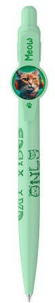 Golyóstoll ICO Cats Z10 pasztell zöld cicás motívumokkal díszített nyomógombos mechanikával működő golyóstoll 0,8 mm-es kék színű golyósbetéttel