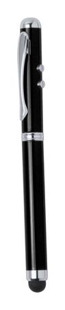 Lézermutatós toll, érintőképernyős véggel és LED lámpával fém díszdobozban. Gombelemmel és kék tollbetéttel szállítjuk. Termékméret: o10×123 mm Feliratozását, emblémázását vállaljuk.