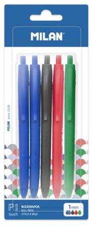 P1 Touch golyóstoll készlet műanyag testtel, különleges gumírozott felületének köszönhetően kellemes tapintású. A készlet 5 db-ot tartalmaz - 2 kék, 1 fekete, 1 piros, 1 zöld. A toll testszínnel ír. A patron kiváló minőségű német tintát tartalmaz. A bejárat hozzávetőleges hossza 1200 méter. Toll mérete: 14,1 x 1,7 cm. Lehetőség tartalék utántöltő vásárlására