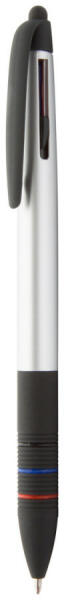Műanyag golyóstoll érintőképernyős funkcióval, gumi markolattal, fémes matt színben. 3 színű tollbetéttel: fekete, kék és piros.