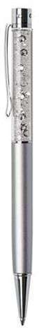 Elegáns kivitelű, kiváló minőségű, eredeti Swarovski® kristályokkal töltött golyóstoll. A tolltest fém, logózható, lézergravírozható. Elegáns ajándék magánszemélyek és cégek részére. Tolltest színe: ezüst. Kristály színe: fehér. Betét színe: kék. Vonalvastagság: 0,7mm. Csomagolás: elegáns díszdobozban.