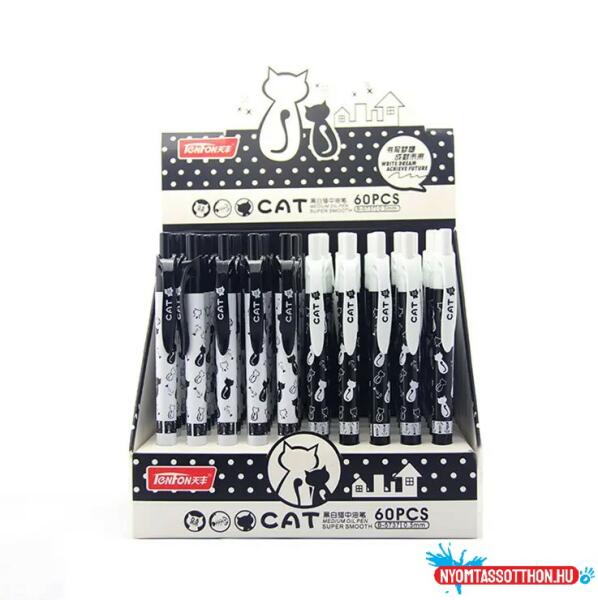 Fekete-fehér cicás golyóstoll az egyik legkeresettebb cicás toll a kínálatunkban! Felnőttek is simán használhatják: elegáns, bármikor magaddal viheted. Benne van a cica-boogie! Csomag tartalma: - 1 db golyóstoll - írásszín: kék - vastagság: vékony, 0.5mm