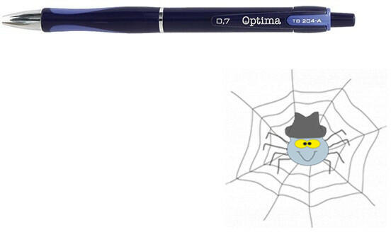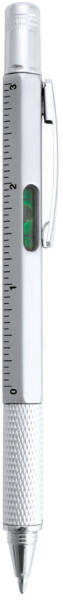 Műanyag golyóstoll fém klipsszel, csillag és laposfejű csavarhúzóval, vízmértékkel és 7 cm-es vonalzóval. Kék tollbetéttel szállítjuk.