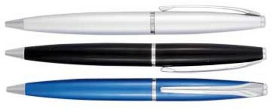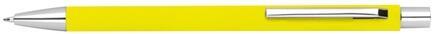 Vékony gumírozott fém nyomógombos golyóstoll ezüst színű kiegészítőkkel és kék színű tollbetéttel. Termék mérete: 0,8 x 14,2cm Emblémázását, feliratozását vállaljuk.
