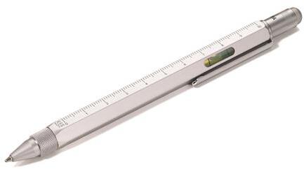 Multifunkciós golyóstoll: toll, segédeszköz és szerszámkészlet egyben. Vízmérték, centiméteres és hüvelykes vonalzó, 1:20 m és 1:50 m-es skála, laposfejes és Phillips csavarhúzó, stílusos, felhasználóbarát és felsőkategóriás minőség. éríntőfej a toll végén érintőkijelzőkhöz fekete, cserélhető tollbetéttel vonalszélesség (1,0 mm) írás élettartam hossz: