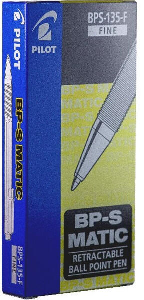 Pilot BP-S MATIC 12 db/csomag fekete golyóstoll A BP-S-Matic cserélhető betétes, nyomógombos golyóstoll, 20 éve az egyik legkeresettebb termékünk. Az erős és ellenálló wolfram-karbid ötvözetű golyó megtartja alakját, így a toll nem fog pacázni vagy karcolni. El lesz ragadtatva a toll vékony írásképtől és kényelmes fogásától.