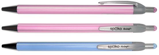 Vékony műanyag testű, nyomógombos golyóstoll csíkos mintával. Írásszín: kék. Betét: X18. Kiszerelés: 40db/dob.