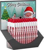 Mikulás motívummal díszített nyomógombos mechanikával működő golyóstoll 0,8 mm-es kék színű golyósbetéttel.