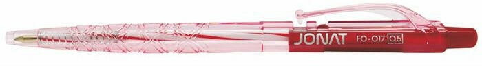 Golyóstoll, 0,25 mm, nyomógombos, FLEXOFFICE "Jonat", piros a tinta színével megegyező áttetsző, anyagában mintás, műanyag tolltest nyomógombos tollszerkezet Wolframkarbid tollhegy vonalvastagság: 0,25 mm