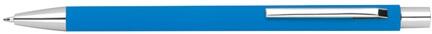 Vékony gumírozott fém nyomógombos golyóstoll ezüst színű kiegészítőkkel és kék színű tollbetéttel. Termék mérete: 0,8 x 14,2cm Emblémázását, feliratozását vállaljuk.