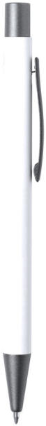 Újrahasznosított alumínium golyóstoll fémes felületű részekkel. Kék tollbetéttel szállítjuk.