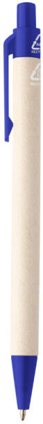Újrahasznosított tejesdoboz golyóstoll újrahasznosított ABS műanyag részekkel. Kék tollbetéttel.