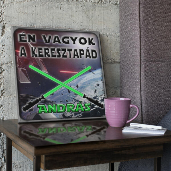 Igazi Star Wars rajongó keresztapukák számára készítettük el ezt a személyre szabható Star Wars vászonkép ajándékot. Ne hagyd ki ezt a lehetőséget, hogy megmutasd keresztapukádnak, mennyire fontos számodra! Adj neki egy olyan ajándékot, ami egyszerre személyes, exkluzív és tele van Star Wars varázslattal. Ha a fénykard és a név színén is szeretnél változtatni akkor a