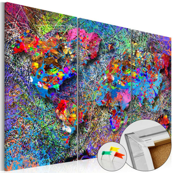 A parafára helyezett "Kép parafán - Colourful Whirl [Cork Map]" kép nagyszerű az eredeti falidíszt kereső személyek számára. A környezetbarát anyag és az érdekes "Kép parafán - Colourful Whirl [Cork Map]" minta azt eredményezik, hogy a sima parafatábla egy stílusos kiegészítővé válik, melyet többféleképpen is fel lehet használni. A parafára helyezett képre rajzszegeke