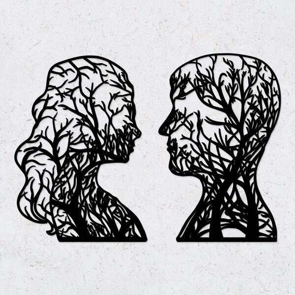 Adjon romantikus hangulatot hálószobájának a szerelem pillantása fa falmatricával. Ez az aprólékosan kidolgozott dekoráció egy férfi és egy nő sziluettjét ábrázolja, amelyek finom faágakkal kapcsolódnak össze, szimbolizálva a kapcsolatban rejlő kölcsönös támogatást. Nemcsak a hálószobába, hanem a nappaliba vagy akár a folyosóra is tökéletes választás. Az időtlen