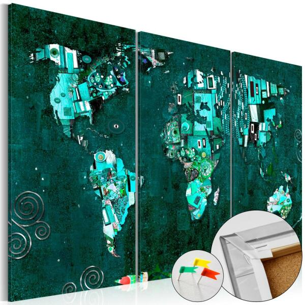 A parafára helyezett "Emerald World [Cork Map]" kép nagyszerű az eredeti falidíszt kereső személyek számára. A környezetbarát anyag és az érdekes "Emerald World [Cork Map]" minta azt eredményezik, hogy a sima parafatábla egy stílusos kiegészítővé válik, melyet többféleképpen is fel lehet használni. A parafára helyezett képre rajzszegeket lehet felszúrni, a térképen be