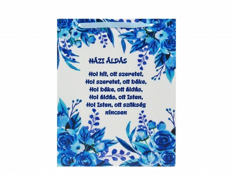 Fatábla Házi Áldás kék virágos 21x26cm 01885 - Falikép Befoglaló méretek 21x0.5x26 cmAnyaga fa