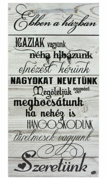 Falikép tábla Ebben a házban 26x50cm - Falikép Fa tábla 2650cm Ebben a h. ff. Befoglaló méretek 27x1x50 cmAnyaga fa