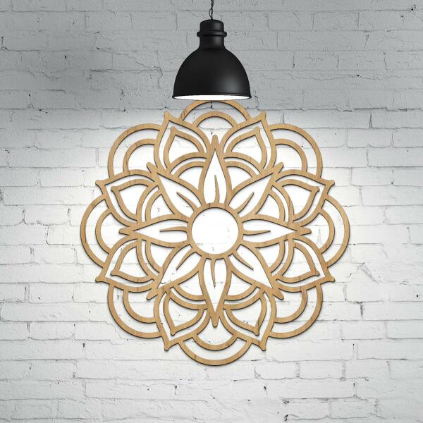 A nap falidísz mandala varázslatos sugaraival bármelyik falat beragyogja otthonában. A mandala a nappali vagy hálószoba falán mutat a legjobban. Minimalista kivitelezése révén a fa mandala minden stílusba illeszkedik - a moderntől a hagyományosig. Segítségével könnyedén teremthet egy nyugodt és harmonikus teret, amely napi emlékeztetőként szolgál a pozitív energiára az él