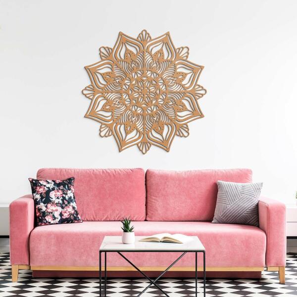 A virág mandala melegséget, szeretetet és biztonságérzetet hoz otthonába. Ez a fából készült kép kifejezetten a közös terekbe, például a nappaliba, a konyhába vagy az étkező falára készült, ahol az egész család összegyűlik. A fa mandala egyedi ajándék lehet szülőknek, nagyszülőknek vagy a feleségnek. Jelentés: A virág mandala mély jelentéssel bír, amely a term