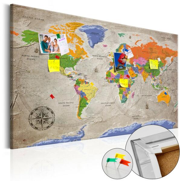 A parafára helyezett "World Map: Retro Style [Cork Map]" kép nagyszerű az eredeti falidíszt kereső személyek számára. A környezetbarát anyag és az érdekes "World Map: Retro Style [Cork Map]" minta azt eredményezik, hogy a sima parafatábla egy stílusos kiegészítővé válik, melyet többféleképpen is fel lehet használni. A parafára helyezett képre rajzszegeket lehet felszúrni