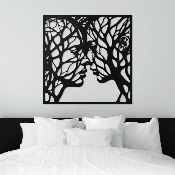 3D fa kép, amely két arcot ábrázol, amelyek finoman összekapcsolódnak a fák ágai mintájával. A stílusos kép modern és minimalista belső terekbe is illik, ahol a szoba középpontjává válik. A precízen kivágott részletek 3D hatást kölcsönöznek a képnek, így tökéletes kiegészítővé válik nappalijához, hálószobájához vagy irodájához. Jelentés: A lelkek összeol