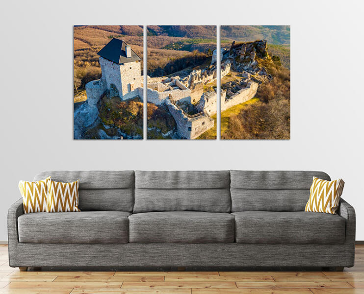 Regéci vár 3 részes vászonkép/ Méret: 100cm X 55cm Kedvelt túristacélpont a Borsod-Abaúj-Zemplém megyében található Regéci vár feszített vászonkép formájában költözik otthonába! A 624 méteres, vulkanikus sziklaszirten már 1285-ben vár állt. Építtetője nagy valószínűséggel az 1278 óta aktív Aba Amadé volt, és az ő birtoka 1307-ben. Rákóczi-várként ismert,